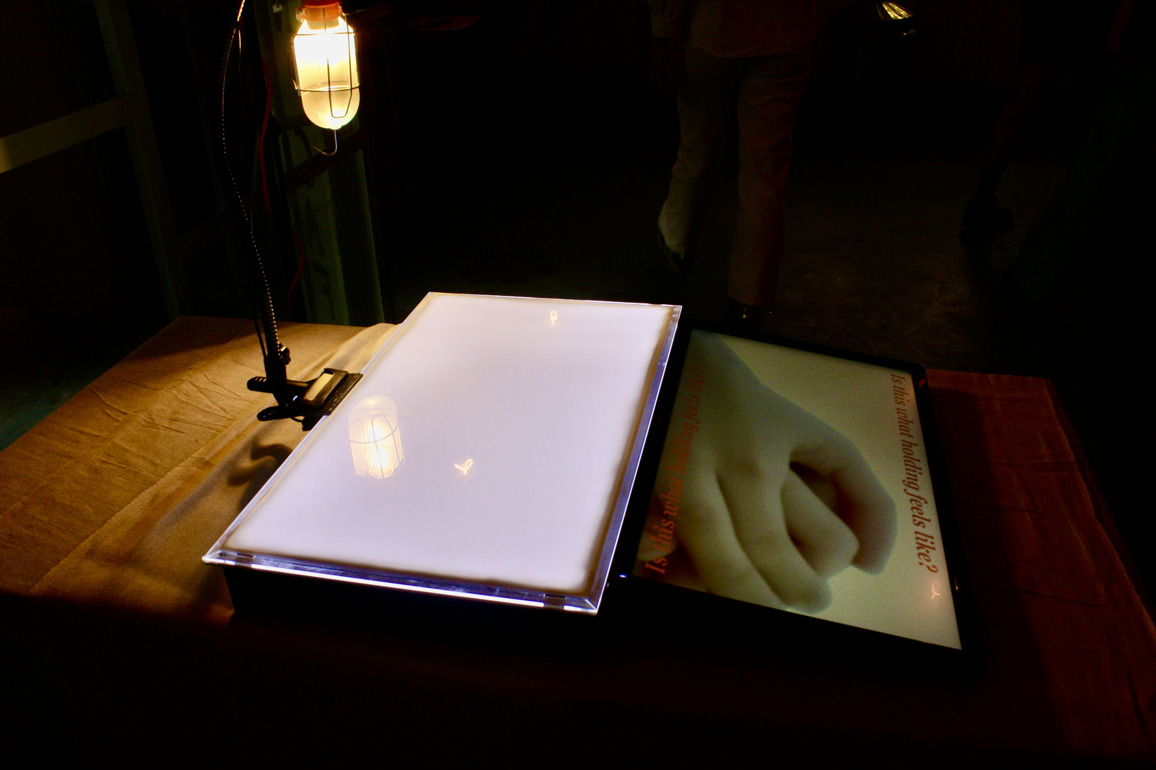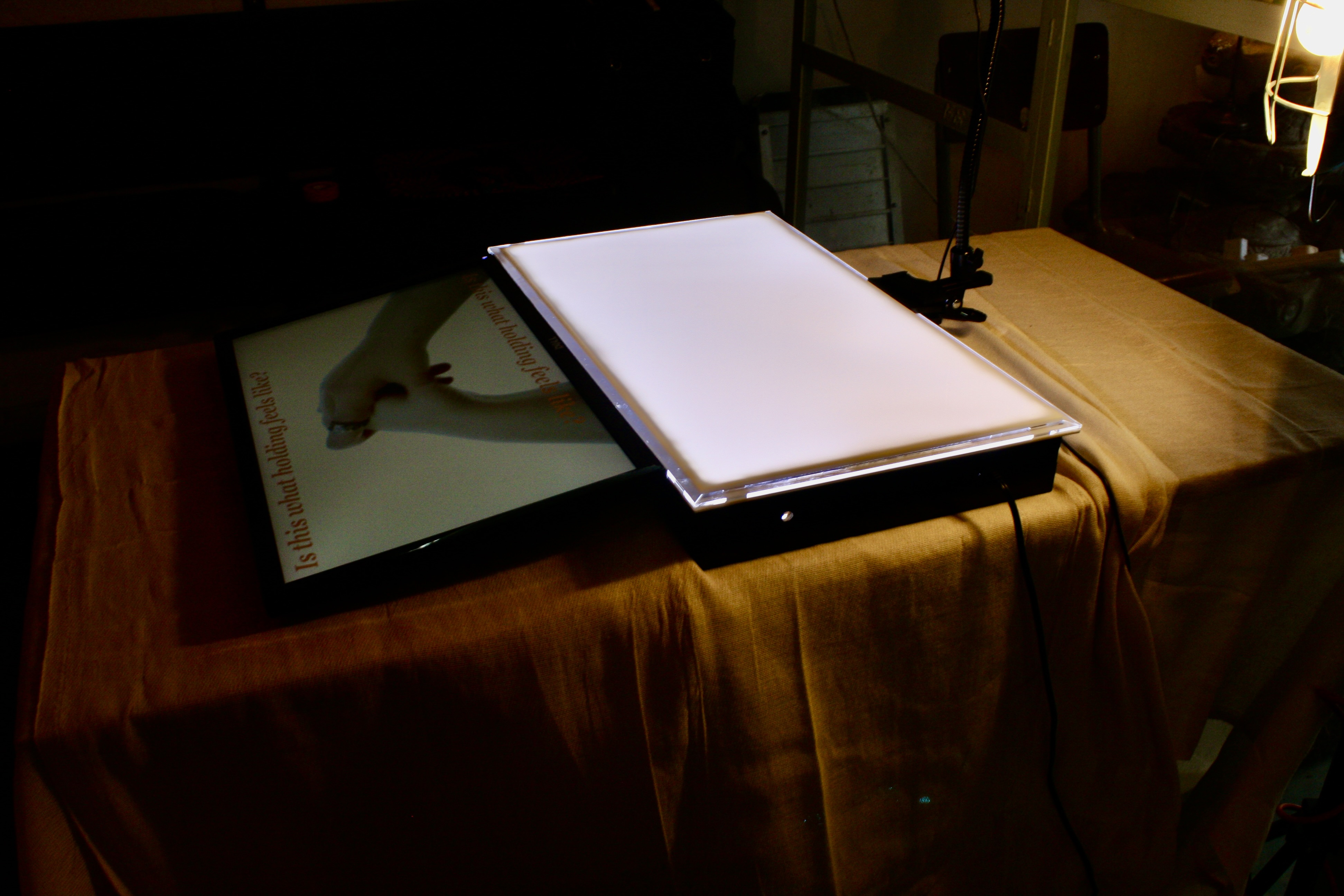 Lightbox, digital screen, webcam, car inspection light, touch designer, stream diffusion