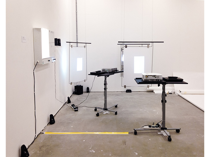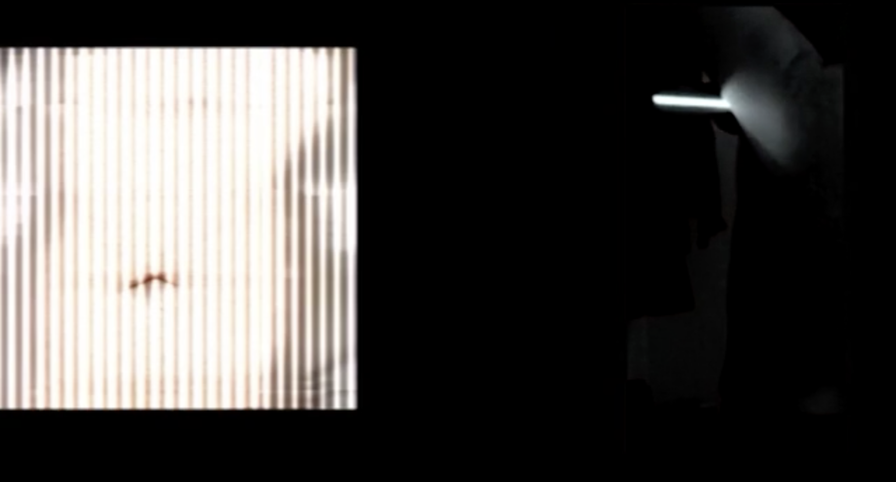 Split screen video (3m), custom steel x-ray hangers, surround sound sound installation, spoken word recording (10m), projector trolleys, mirror, x-ray display lightbox